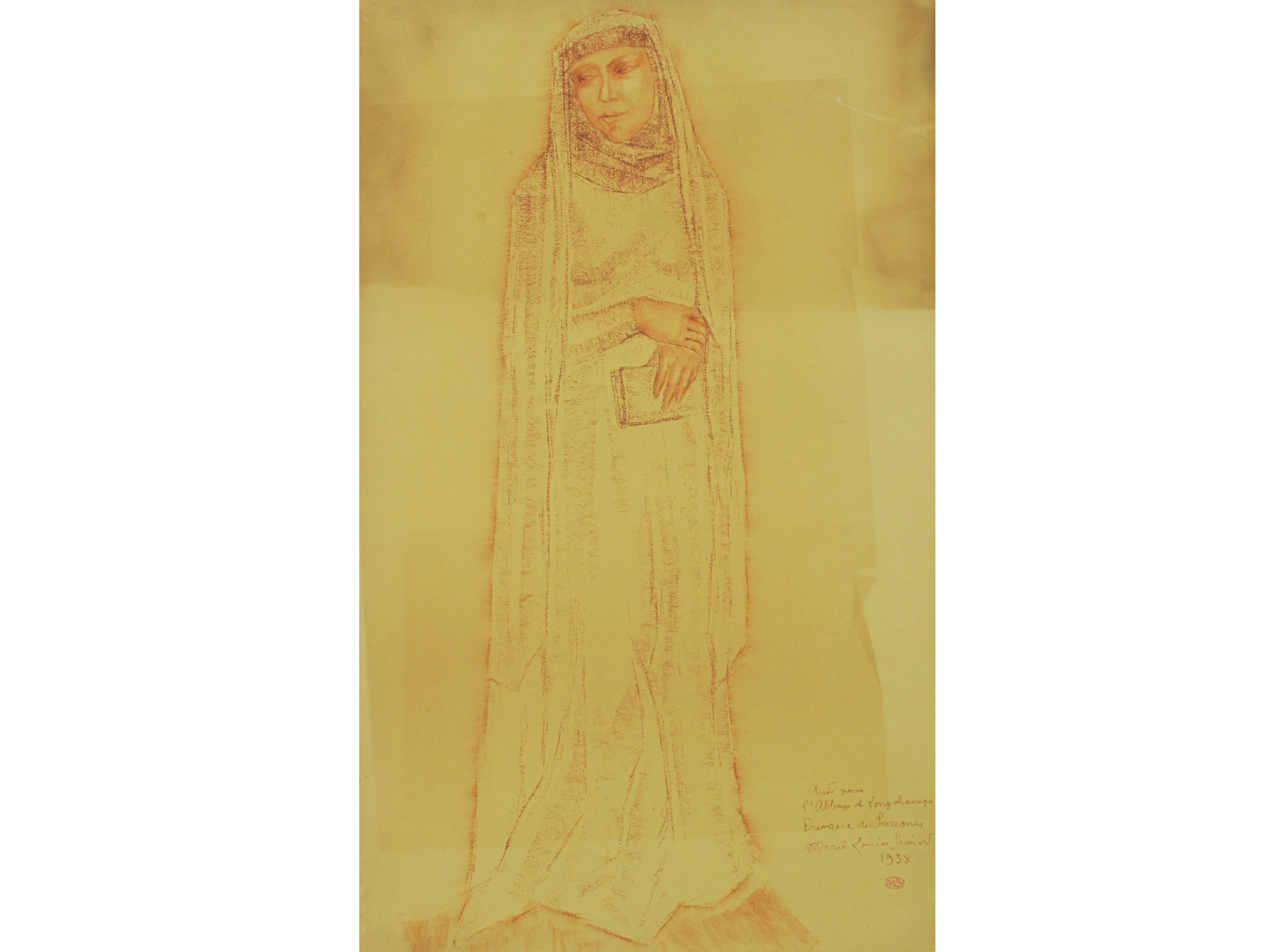 Marie-Louise Simard (1886-1963) Studio eseguito per l'abbazia di Longchamps presso Parigi Sanguigna su carta Firmato datato e siglato Misure 74x44,5 cm