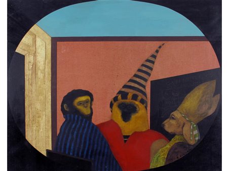 Guido Biasi (Napoli 1933-Parigi 1982) Processo a Paolo Veronese Olio su tela Firmato Datato Milano 1970 Misure 65x80 cm
