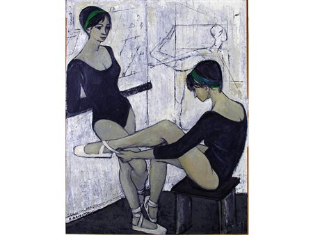 Franco Dacquati (1910-1988) Prima del ballo Olio su tavola Firmato Misure 85x65 cm