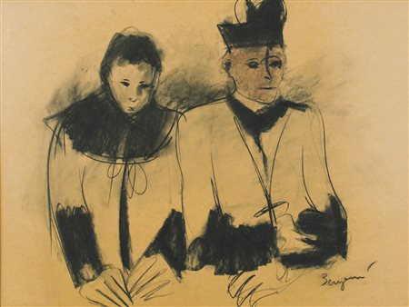 Giacomo Bergomi (Orzinuovi 1923-Brescia 2003) Chierici Tecnica mista su cartoncino Firmato Misure 47x65 cm