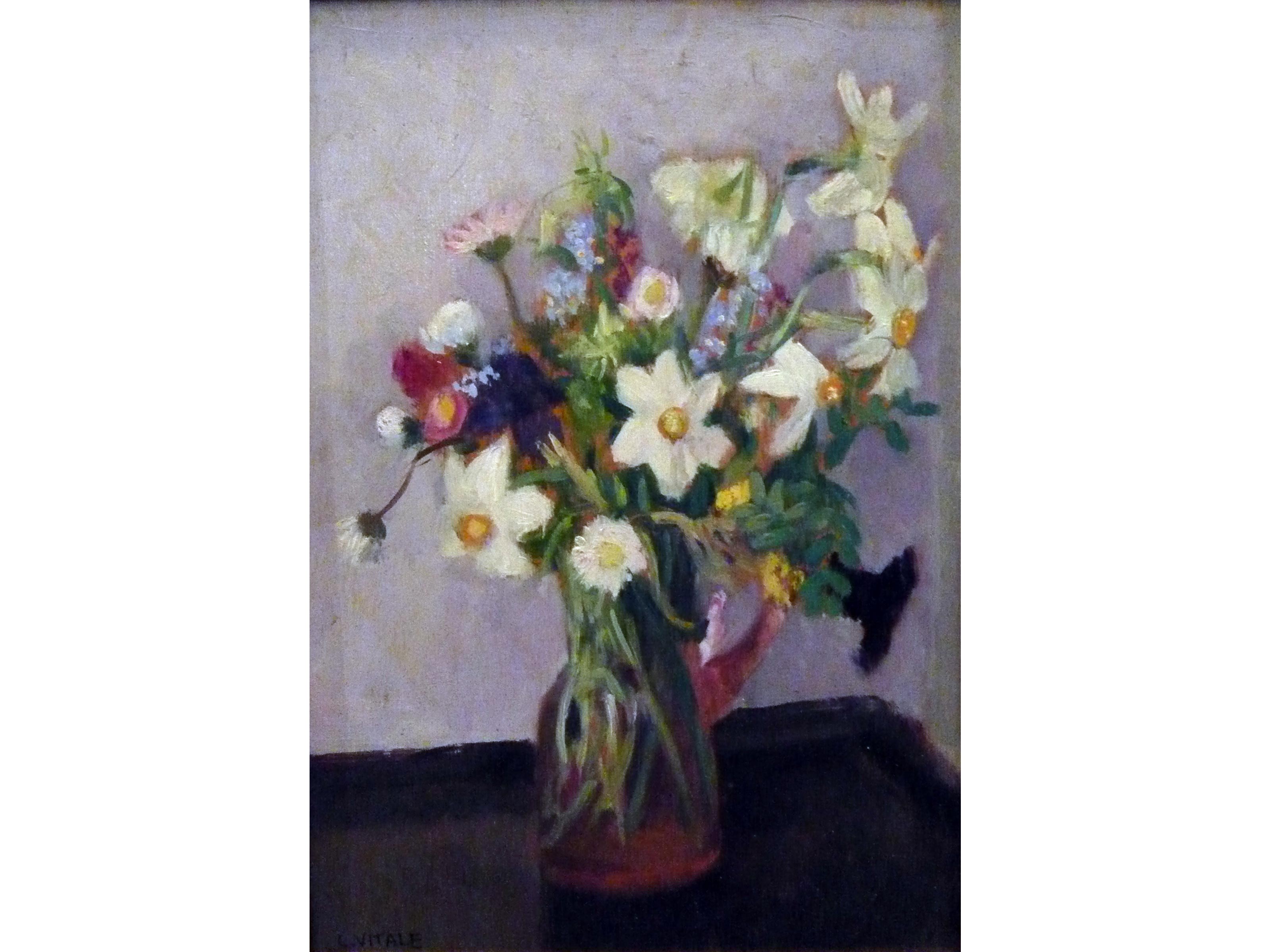 Carlo Vitale (Milano 1902-Camogli 1996) Fiori Olio su tavola Firmato Misure 36x26 cm