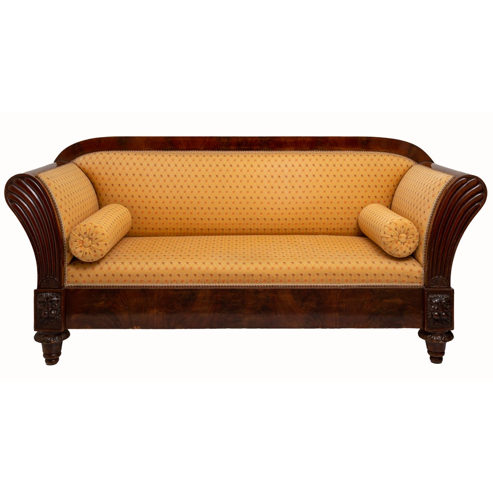 DIVANO Impero a barca in mogano e piuma di mogano.