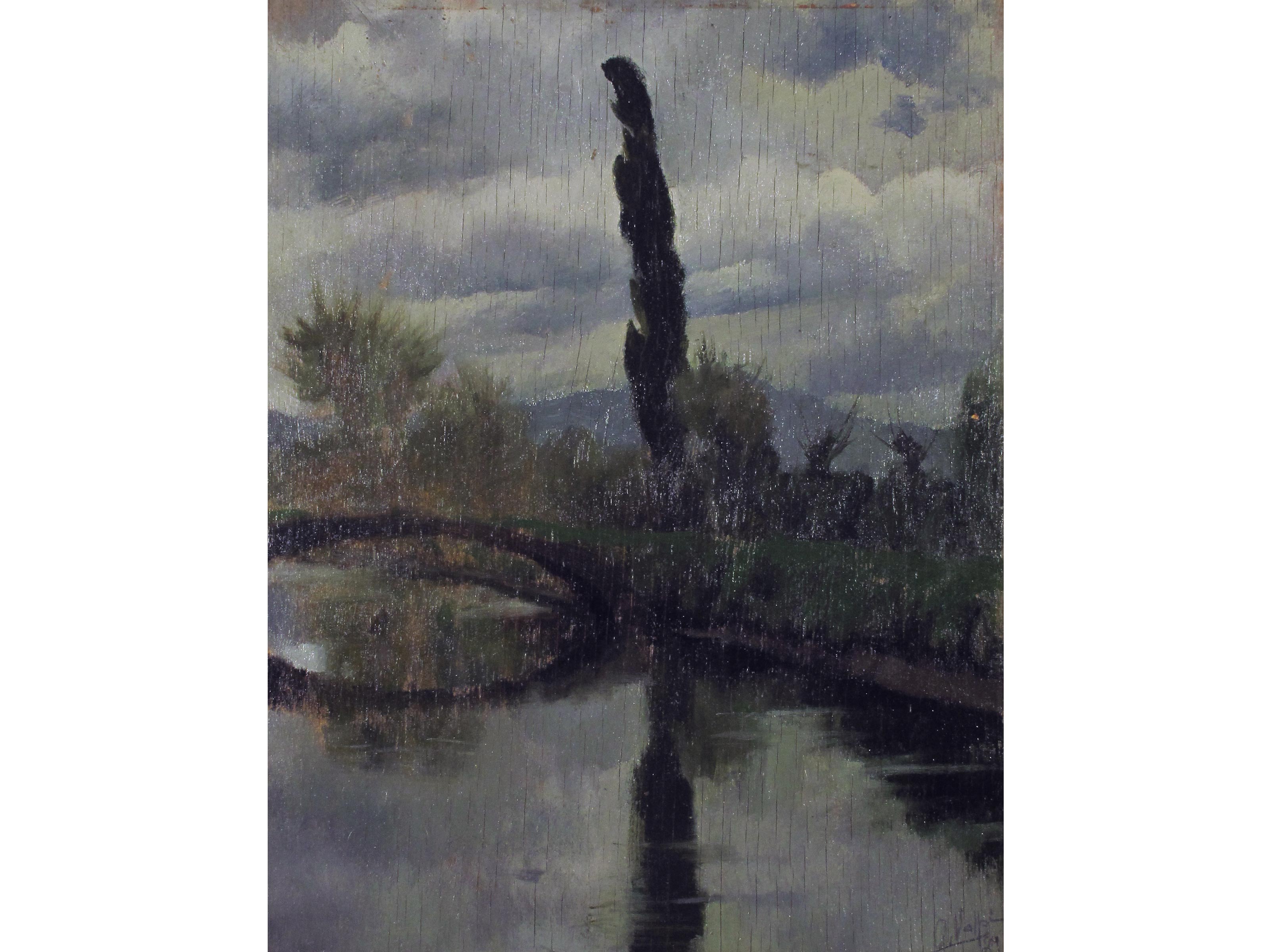 Alessandro Volpi (Pisa 1909-2009) Paesaggio Olio su tavoletta Firmato Misure 44.5x34.5 cm