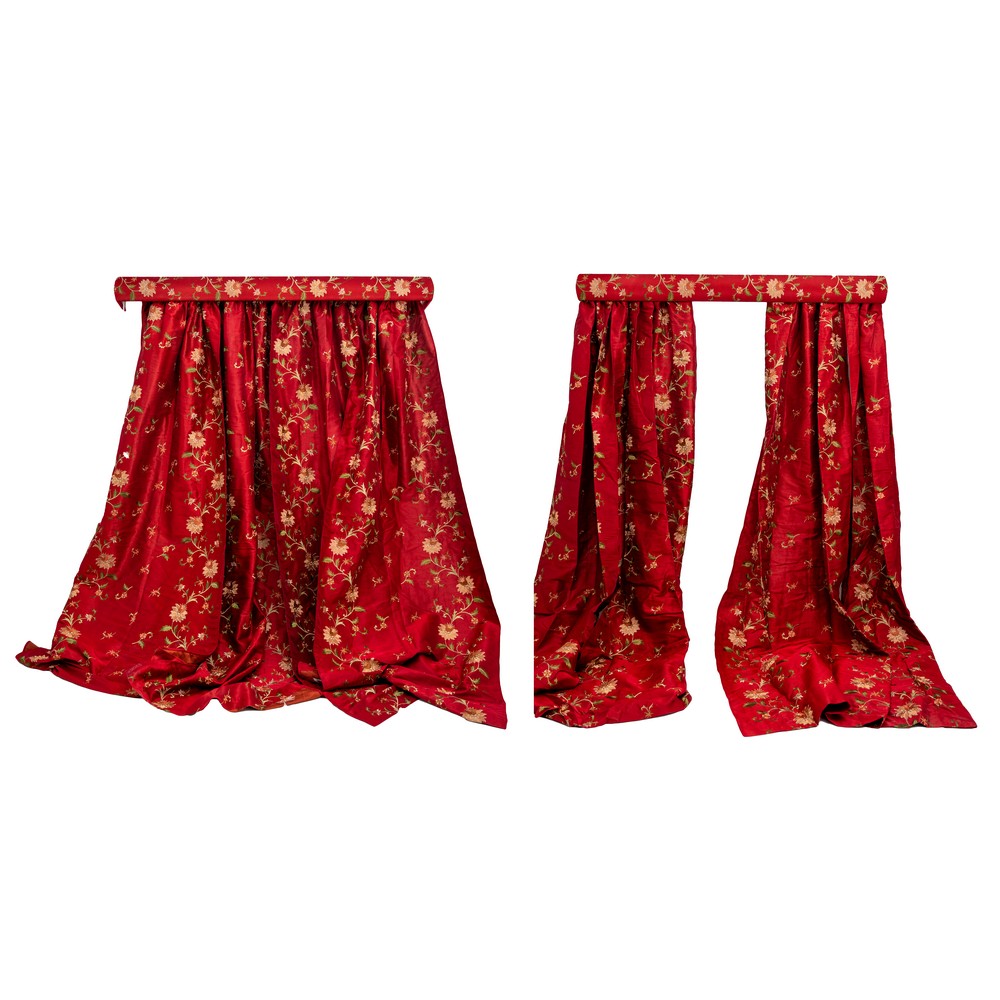 DUE ZINEFFE con caduta in raso satinato nei toni del bordeaux con ricami a motivo floreale.