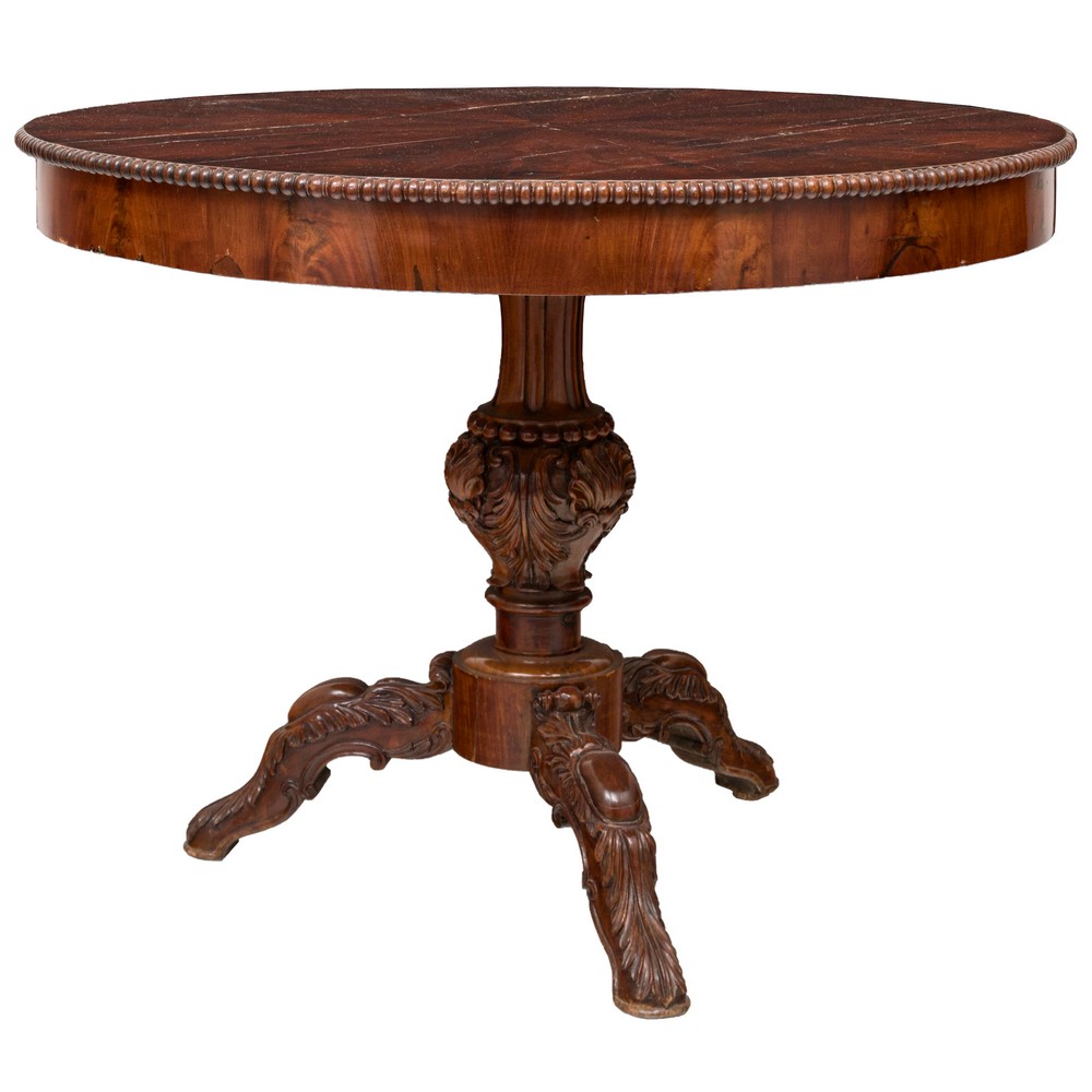 TAVOLO da appoggio Luigi Filippo di forma circolare in mogano e piuma di mogano.