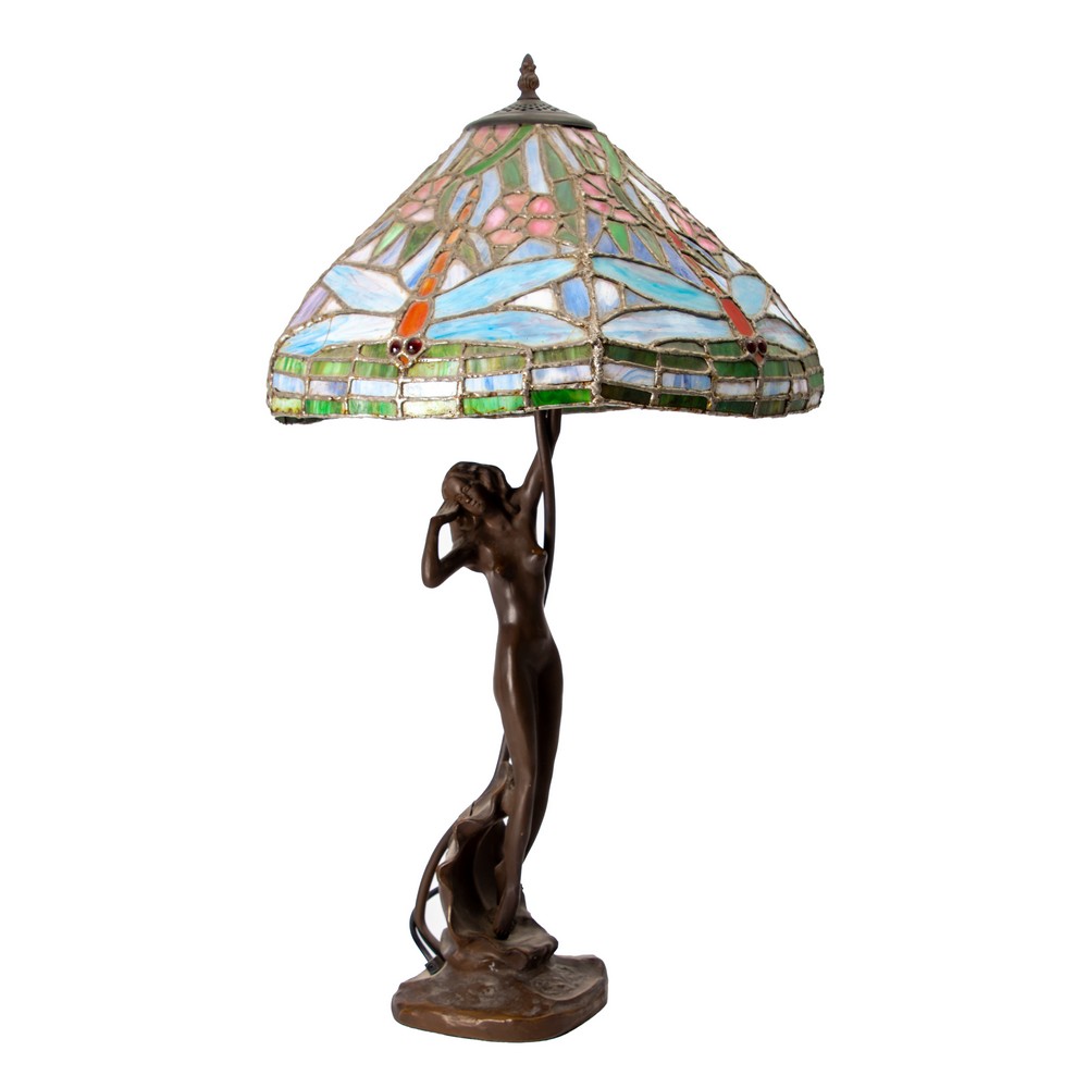 LUME stile Tiffany in bronzo e paralume in pasta di vetro