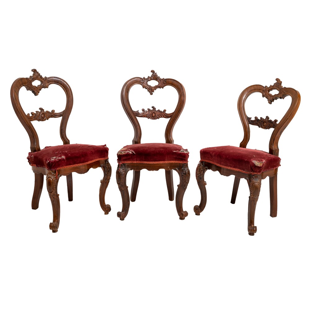 TRE SEDIE Luigi Filippo in legno di noce intagliato