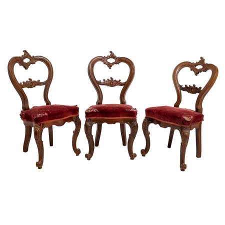 TRE SEDIE Luigi Filippo in legno di noce intagliato.