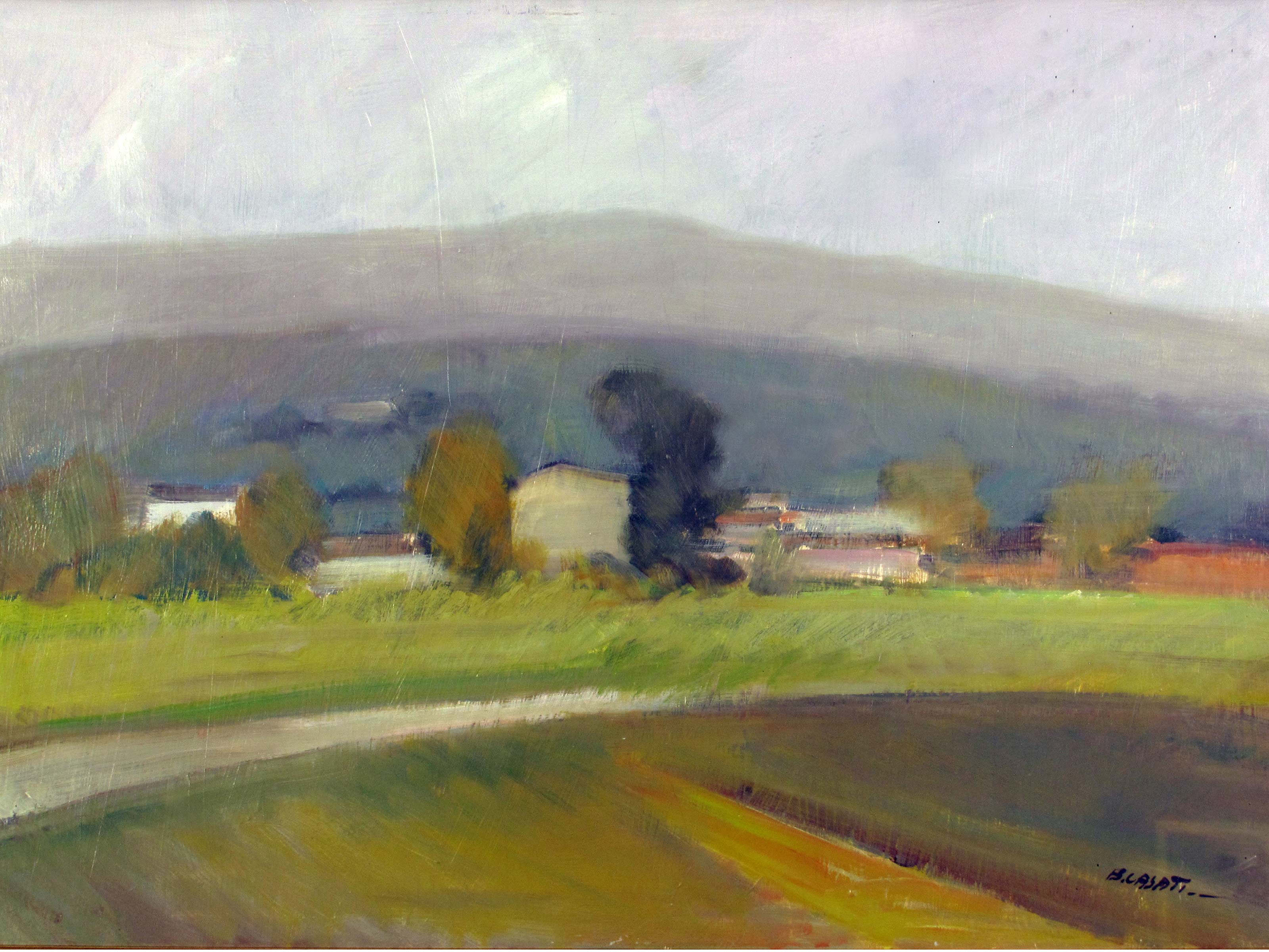 Bruno Casati (XIX secolo) Campagna Olio su compensato Firmato Misure 69x49 cm