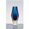 Vaso in vetro sommerso nei toni trasparente, blu e giallo, corpo sfaccettato con bocca piana.