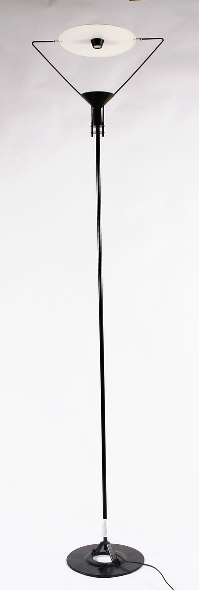FORCOLINI CARLO. Lampada da terra. Floor lamp. Metallo laccato. Cm 30x203. Lampada da terra a luce alogena modello Polifemo. Metallo laccato, diffusore orientabile. Produzione Artemide. Polifemo halogen light floor lamp. Lacquered metal, anjustable diffuser for Artemide. 1983.