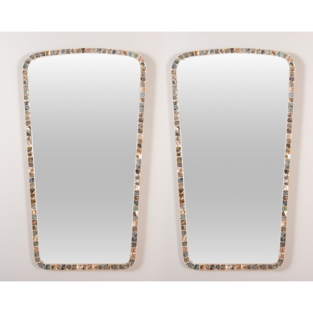 Coppia di specchiere da parete, cornice in mosaico di madreperla, vetro specchiato.