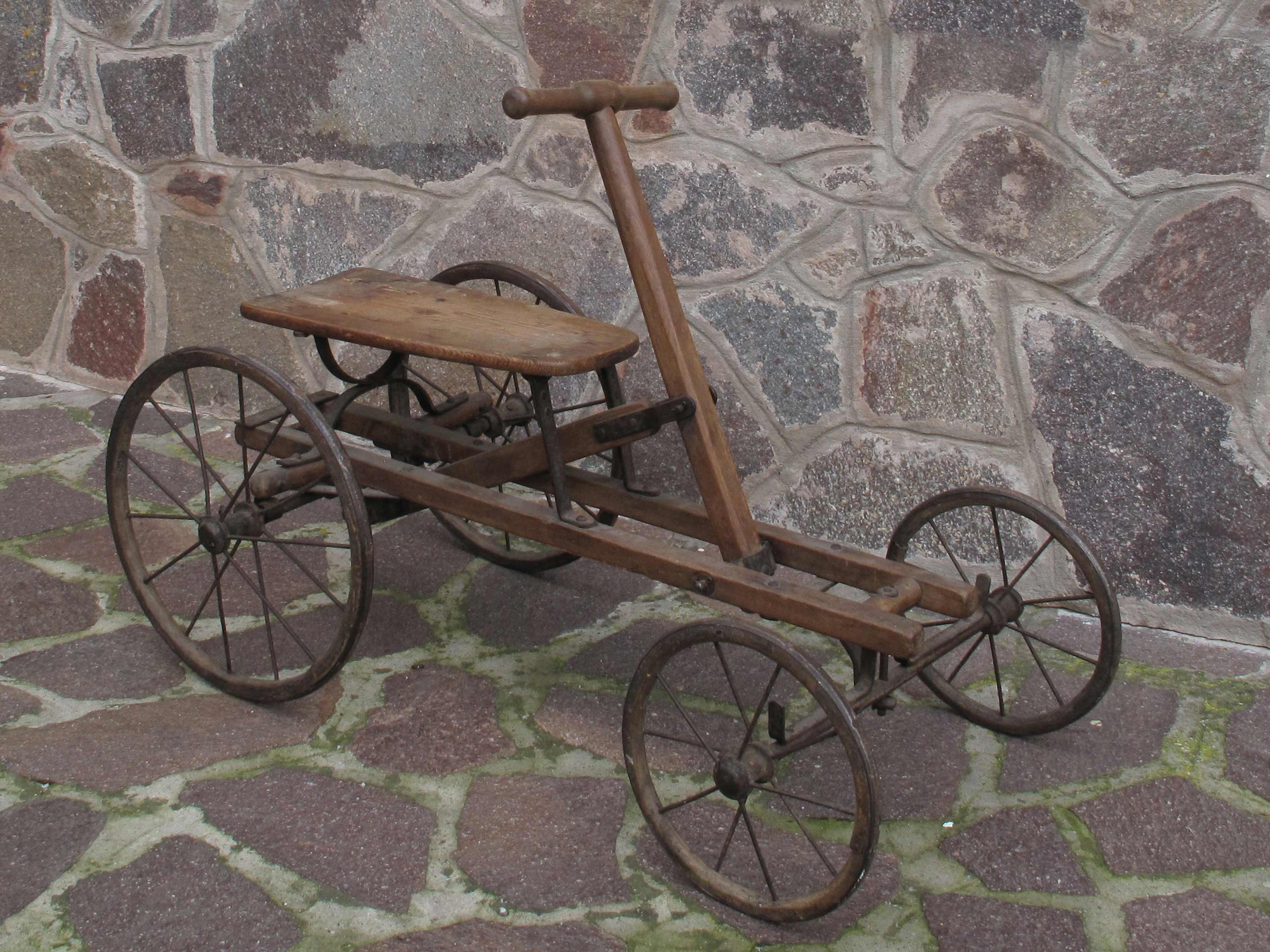 Quadriciclo per bambini in legno e ferro XIX secolo Misure 85x42, altezza 65...