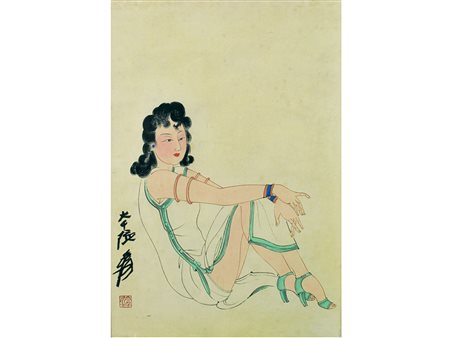 Scuola orientale (XX secolo) Geisha Acquarello su carta Misure 48,2x33,5 cm