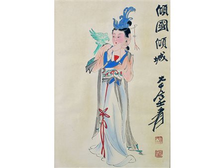 Lot 95 | Scuola orientale (XX secolo) Geisha Acquarello su carta Misure 48,2x33,5 cm