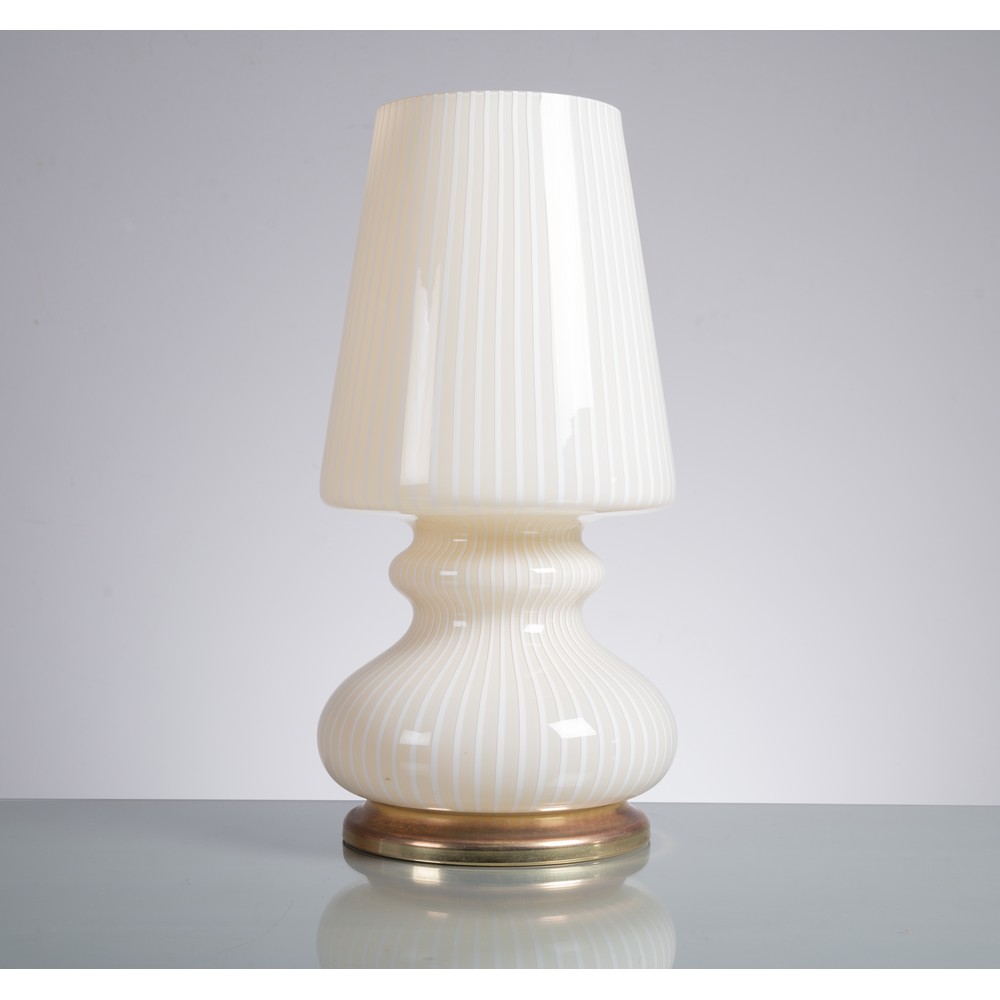 Grande lampada da tavolo “Mushroom” ad una luce in vetro lattimo e avorio, base circolare in ottone.