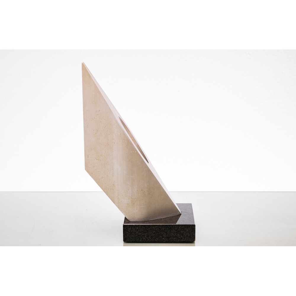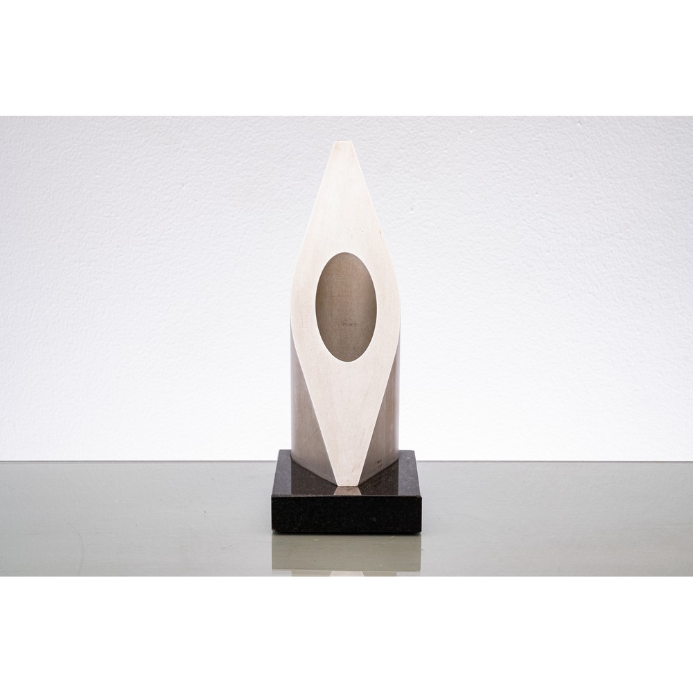 Scultura in acciaio di forma geometrica cava, firmata e numerata 18/100.