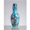 Grande vaso in ceramica dipinta in policromia su fondo azzurro, decoro con figura umana, corpo ovalizzato con collo cilindrico e bocca piana. Firma alla base.