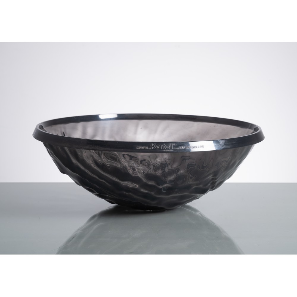Grande coppa modello “Moon” translucente in PNMA fumè. Firma e marchio di produzione sul bordo.