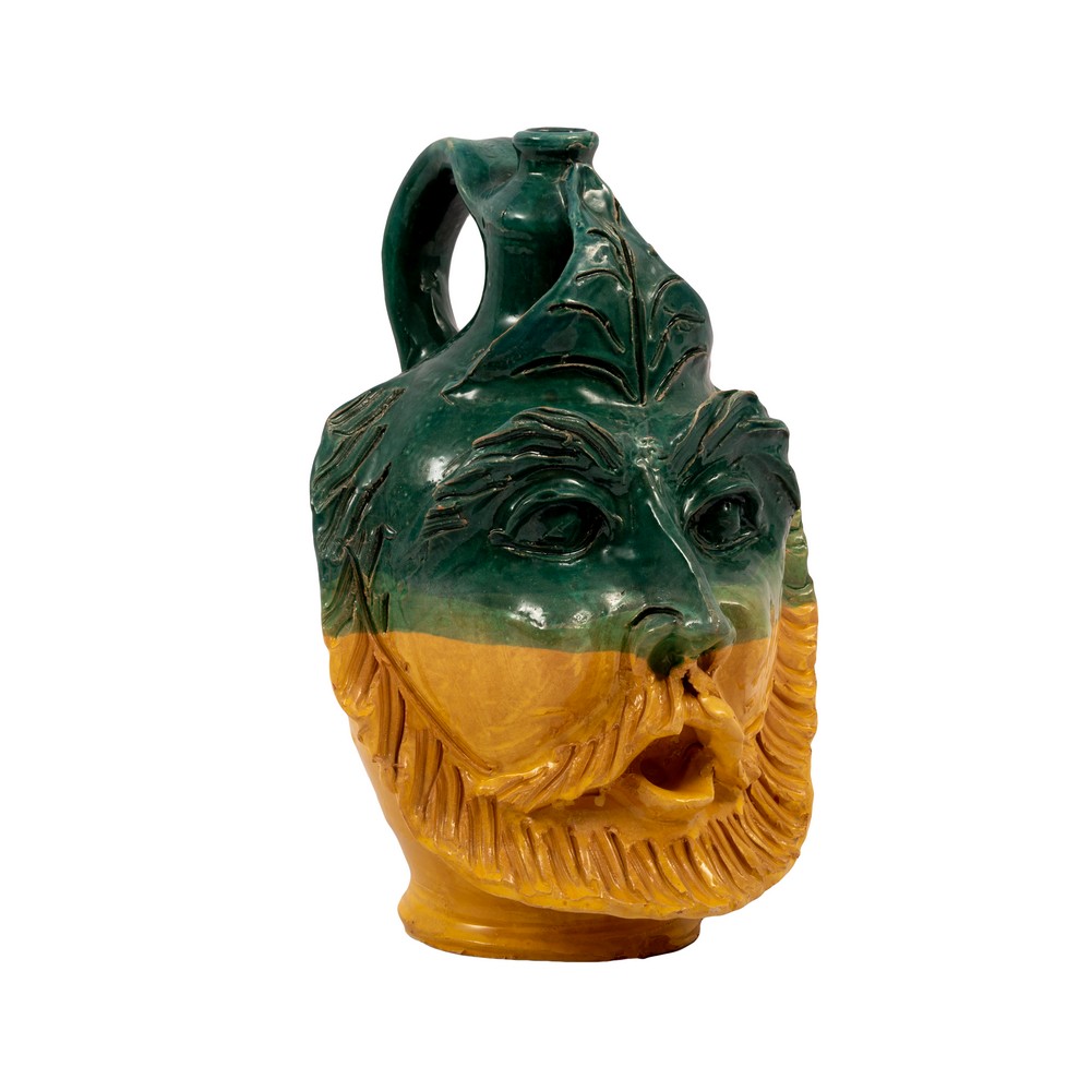 VERSATOIO raffigurante maschera apotropaica in ceramica smaltata e decorata.