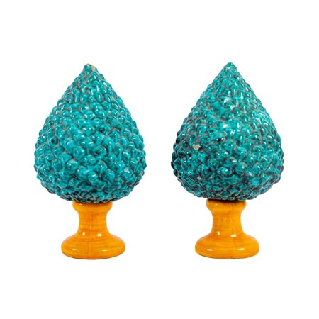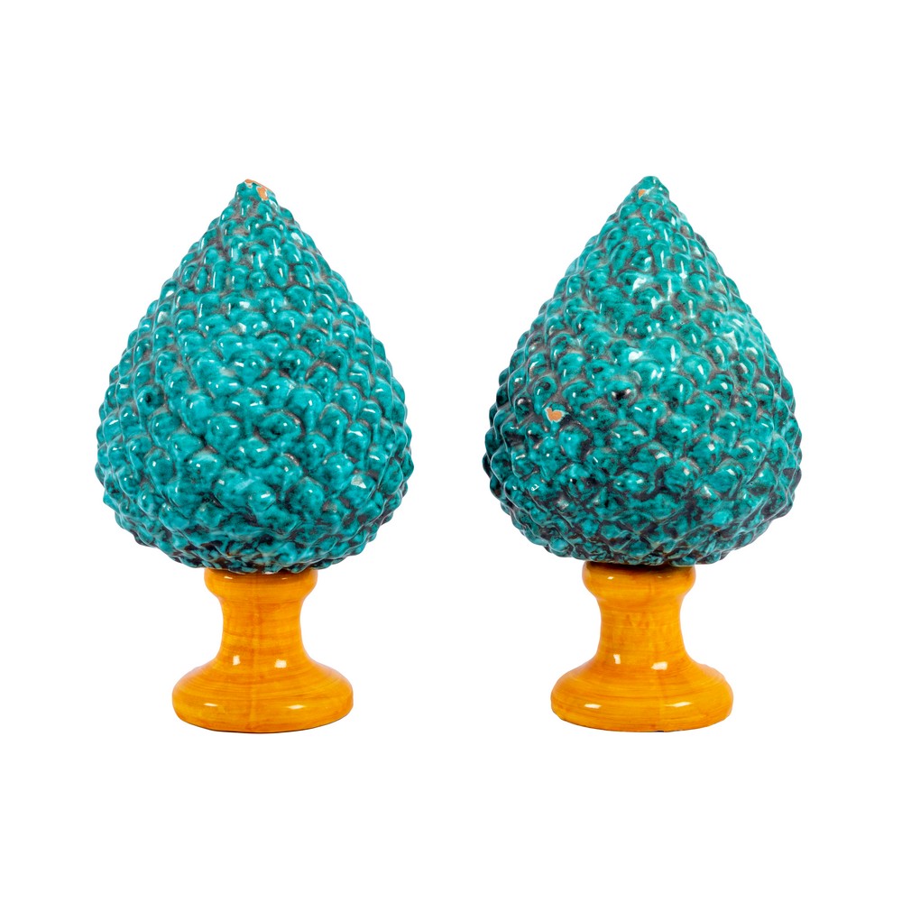 COPPIA DI PIGNE in ceramica decorata e smaltata.
