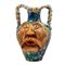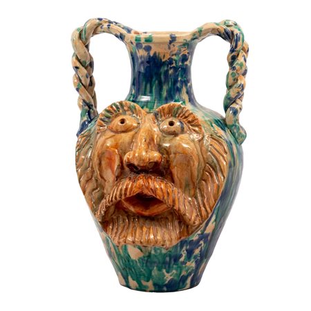 ANFORA raffigurante maschera apotropaica in ceramica decorata e smaltata.
