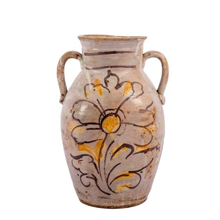 CONTENITORE CON MANICI decorato e smaltato (difetti e usure).