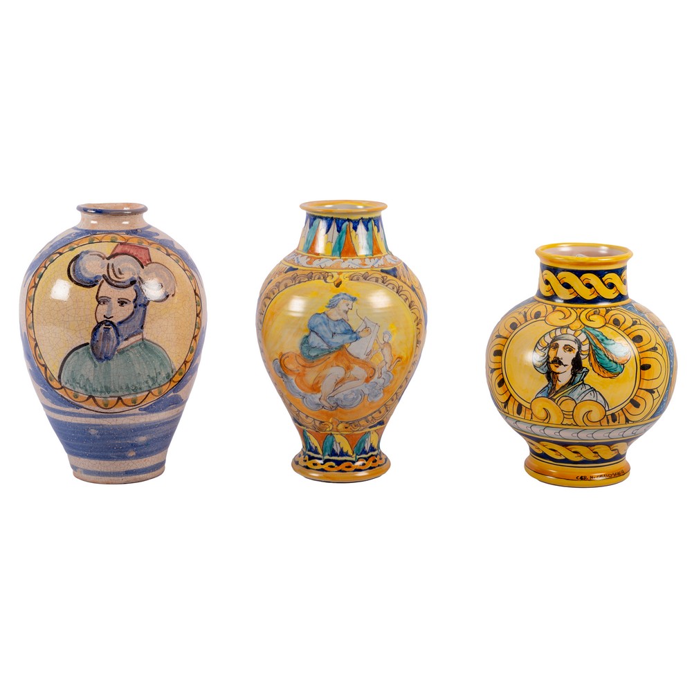 TRE BOCCE in ceramica decorata e smaltata di varia tipologia.