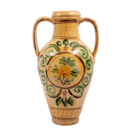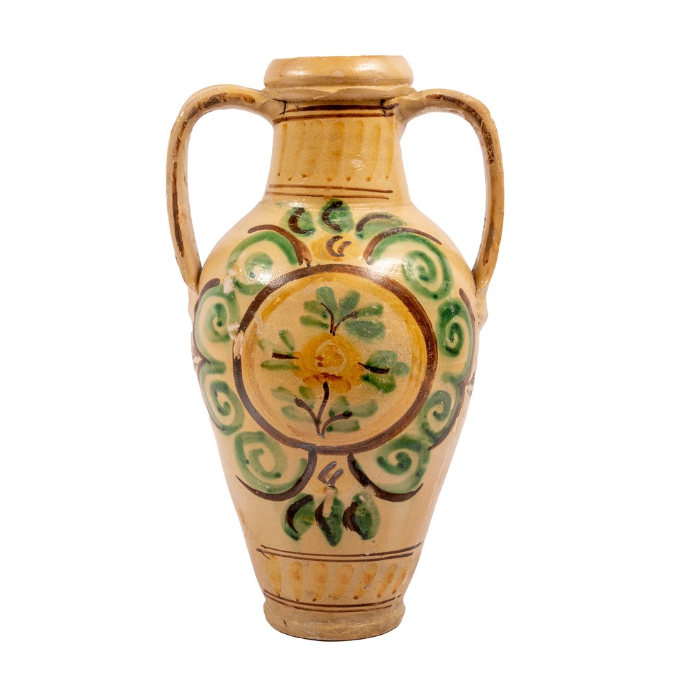 QUARTARA in ceramica decorata e smaltata (difetti e usure).