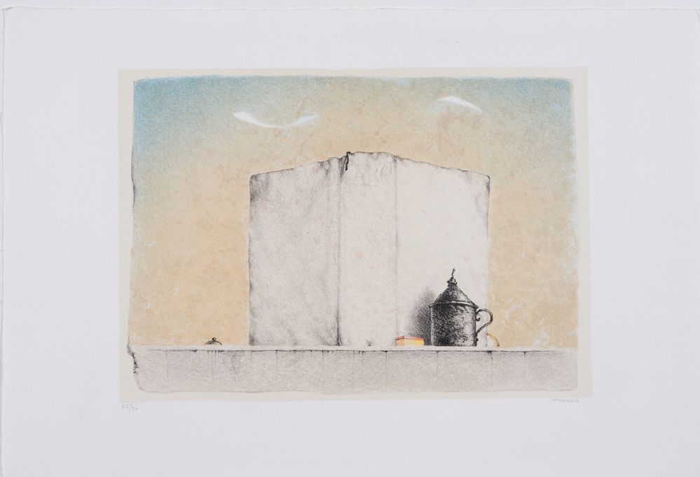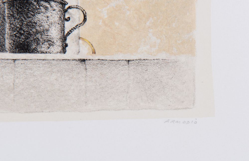 ARMODIO (Piacenza 1938) "Senza titolo". Litografia a colori su carta. Lastra: cm 24x34; foglio: cm 35x50,5. Opera firmata in basso a destra Armodio. Reca numeri di tiratura in basso a sinistra 65/70.