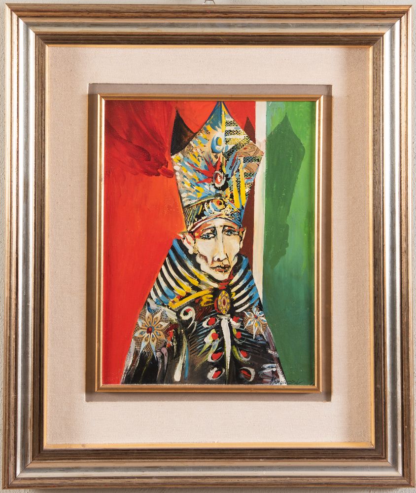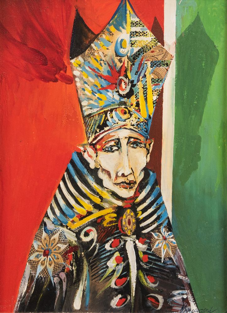 ALDO BORGONZONI (Medicina 1913 - Bologna 2004) "Cardinale". Olio su faesite....