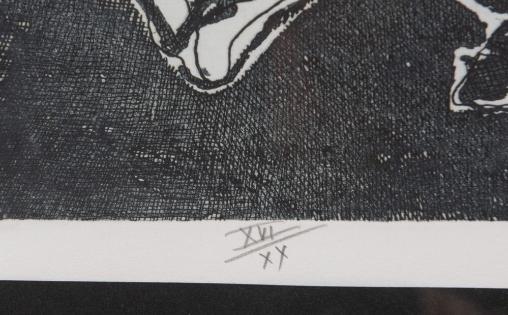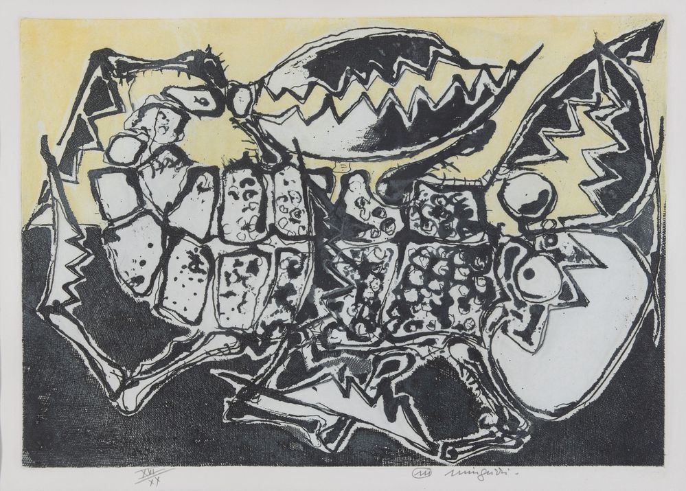 LUCIANO MINGUZZI (Bologna 1911 - Milano 2004) "Senza titolo". Lastra: cm 34x49. Opera firmata in basso al centro Minguzzi. Reca numeri di tiratura in basso a sinistra XVI/XX.