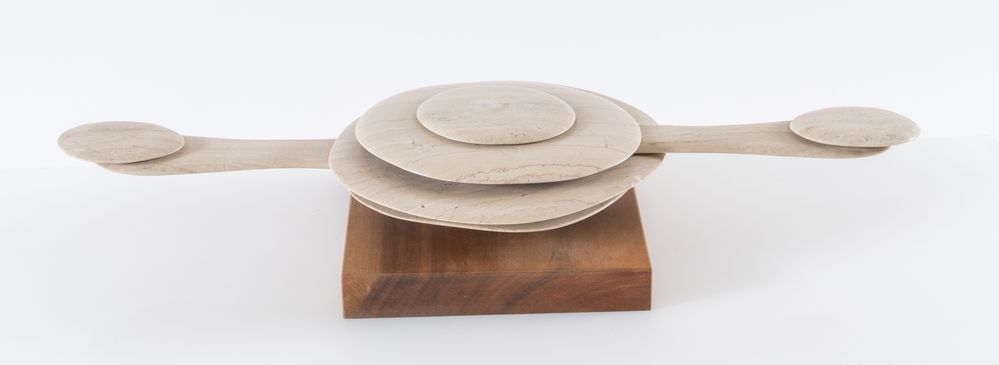 TATSUMI OKI (1948 - 2001) "Fossile". Scultura mobile in marmo. Cm 9x73x29. Esposizioni: Giappone oggi, La Casa dell'Arte, Sasso Marconi, 1975. Bibliografia: Giappone oggi, in Le Arti, n. 2 febbraio 1976, pag. 69.