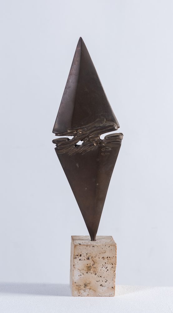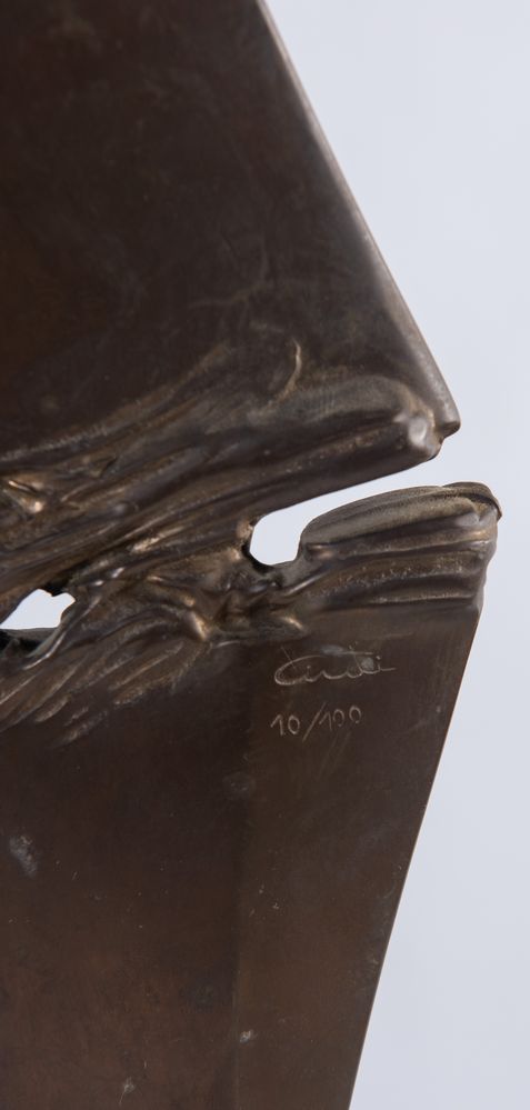 FRANCO CIUTI (Roma 1938) "Senza titolo". Scultura in bronzo su basamento in pietra. Cm (senza basamento): 32,5x10x2. Opera firmata in basso a destra Ciuti. Reca numeri di tiratura in basso a destra 10/100.