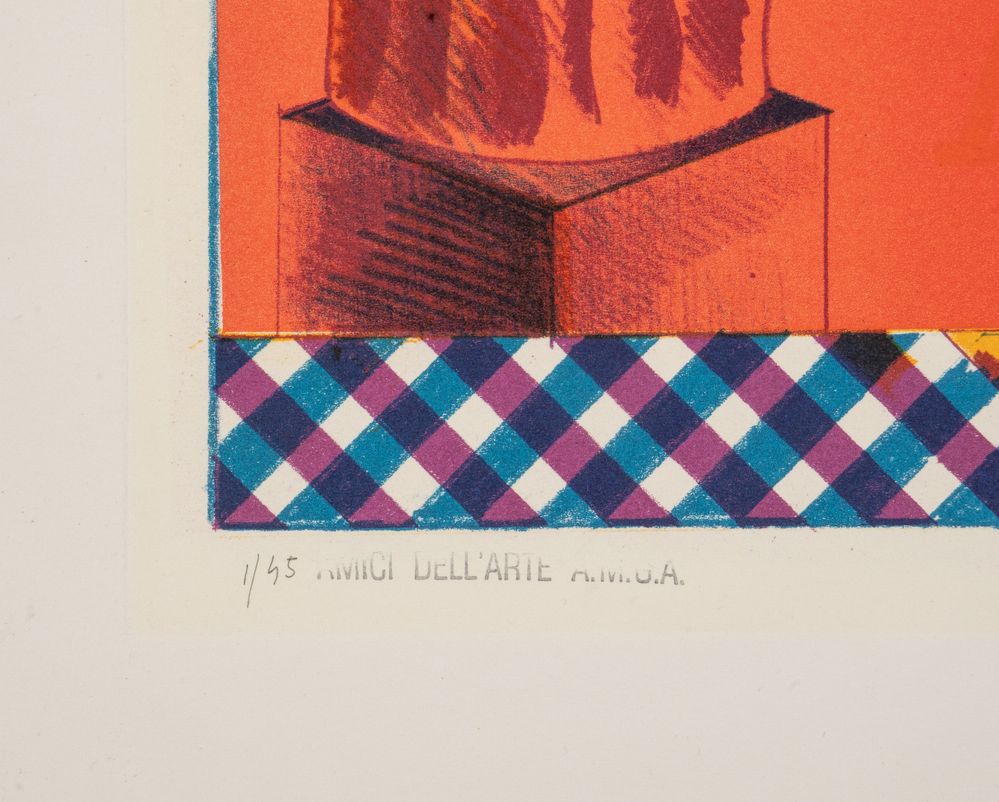 CONCETTO POZZATI (Vo 1935 - Bologna 2017) "Senza titolo", 1966. Litografia a colori su carta. Lastra: cm 33x42,5; foglio: cm 48x61,8. Opera firmata e datata in basso a destra Pozzati '66. Reca numeri di tiratura in basso a sinistra 1/45. Reca timbro in basso a sinistra.
