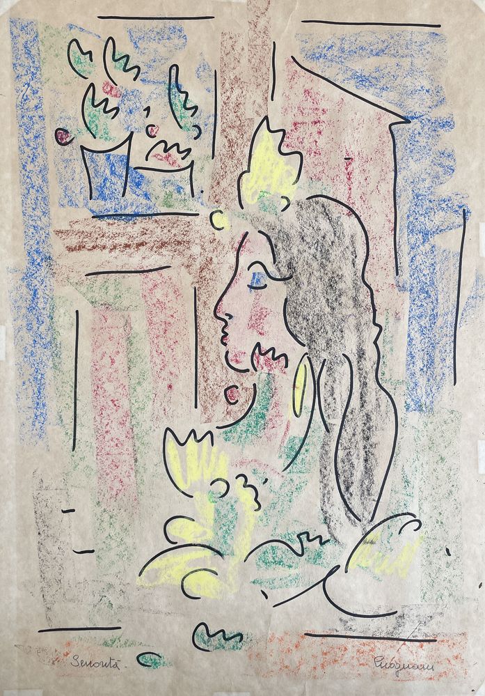 CORRADO CICOGNANI (Bologna 1919 - 1992) "Senorita". Tecnica mista su carta. Cm 62,5x44,3. Opera firmata in basso a destra Cicognani. Opera intitolata in basso a sinistra Senorita.