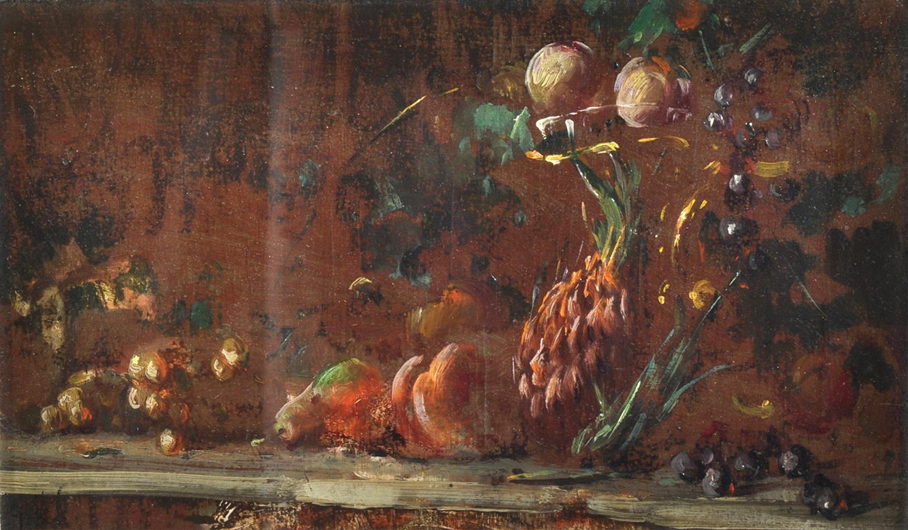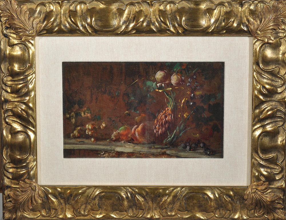 Uva Giuseppe (Napoli 1847 - 1937) Natura morta olio su tavola, cm 14x24,5 firmato in basso a sinistra: G. Uva
