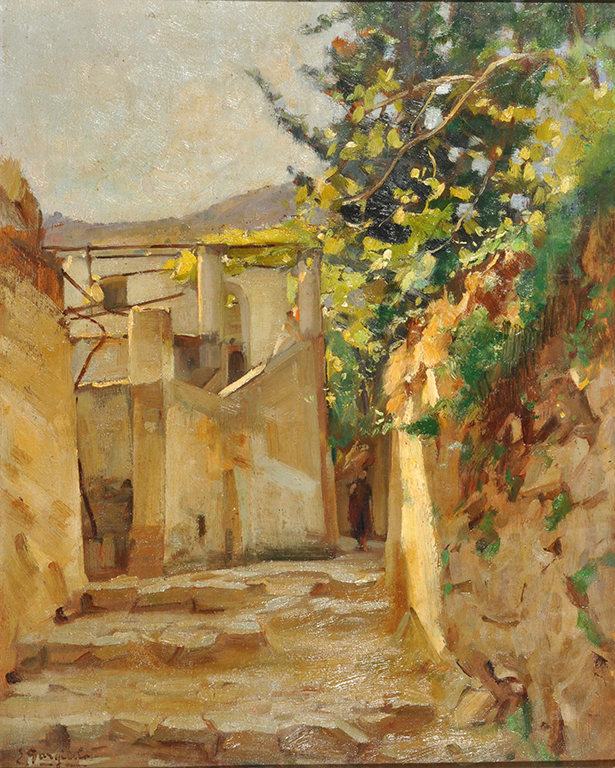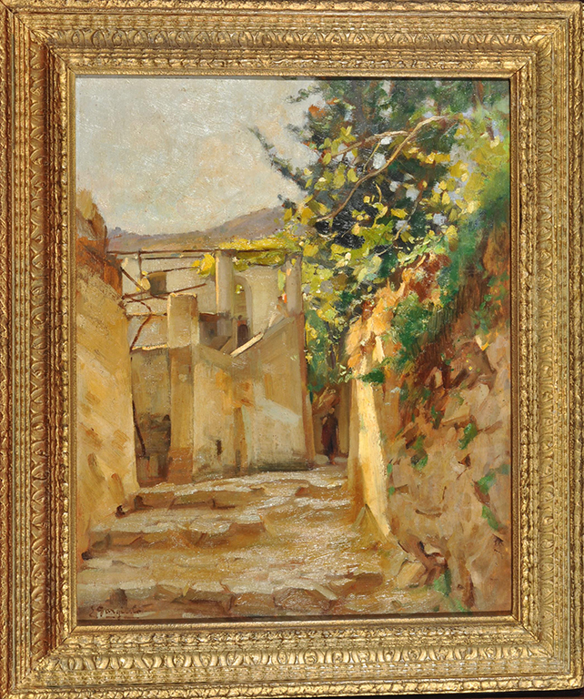Gargiulo Enrico (Sorrento, 1881 – 1948) Viottolo caprese olio su tavola, cm 51x40 firmato in basso a sinistra: E. Gargiulo
