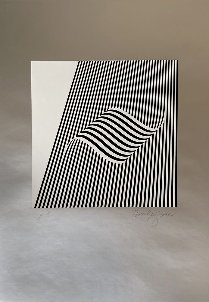 FRANCO GRIGNANI (1908 - 1999) "Senza titolo". Litografia a colori su carta. Cm 60x42. Opera firmata in basso a destra Franco Grignani. Reca numeri di tiratura in basso a sinistra P.A.
