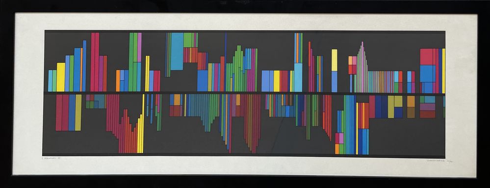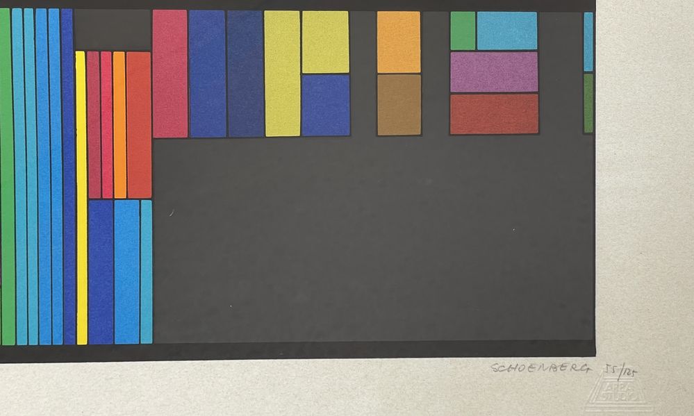 LUIGI VERONESI (Milano 1908 - 1998) "Shoenberg", 1979. Litografia a colori su carta. Foglio: cm 35,5x100; lastra: cm 27x86. Opera firmata in basso a sinistra L. Veronesi. Reca numeri di tiratura in basso a destra 55/125.