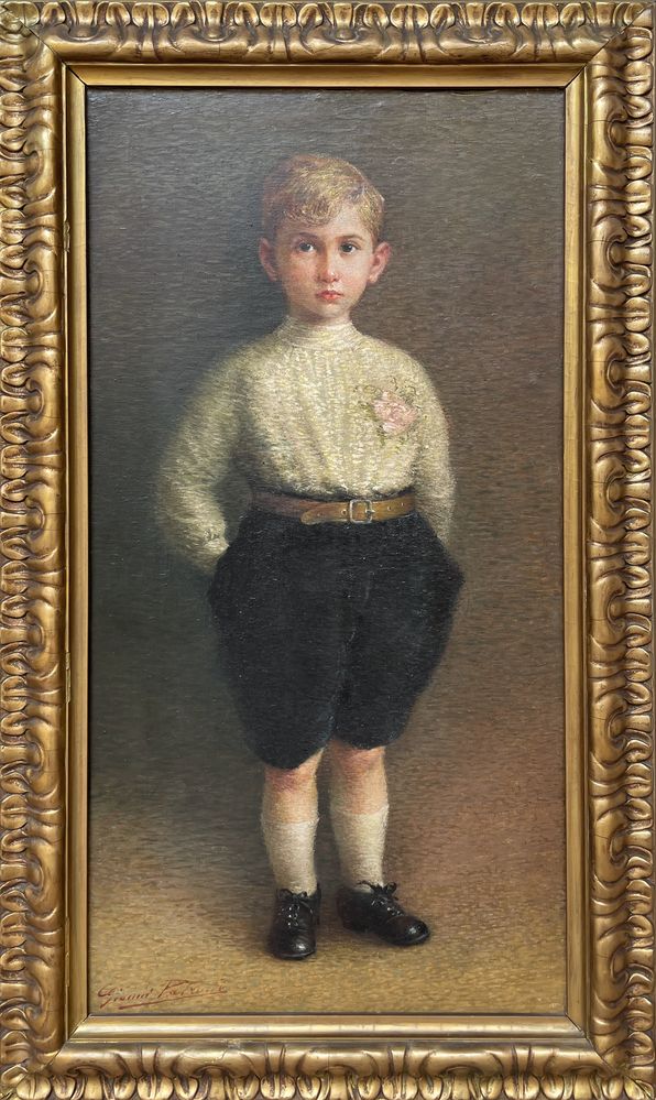 GIOVANNI PATRONE (Genova 1904 - 1963) "Fanciullo". Olio su tela. Cm 100x50. Opera firmata in basso a sinistra Giovanni Patrone.