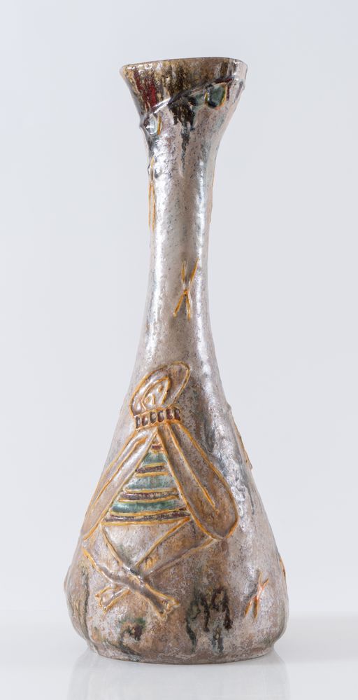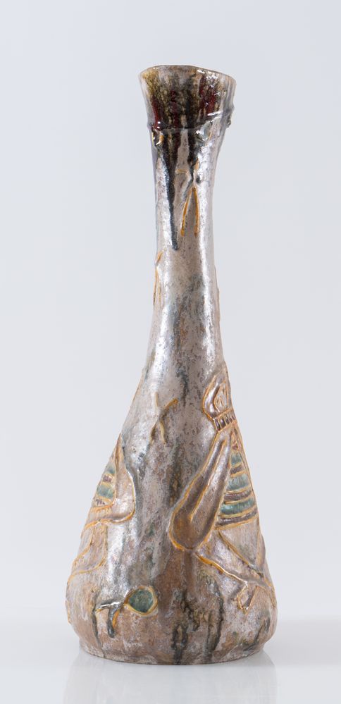 CARLO ZAULI (Faenza 1926 - 2002) Grande vaso in ceramica con rilievi figurati sui toni del beige, 1954. Cm 50,5x19x17. Alla base firmato e datato Zauli Faenza 1954.