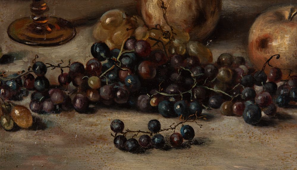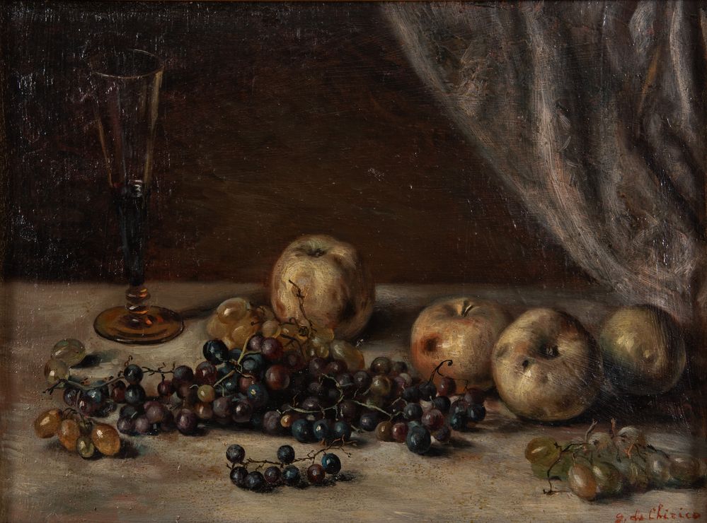 GIORGIO DE CHIRICO (Volo 1888 - Roma 1978) "Vita silente", 1944. Olio su faesite. Cm 50x65.