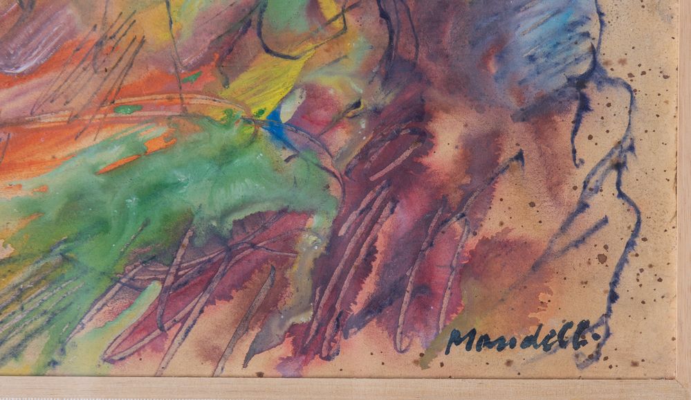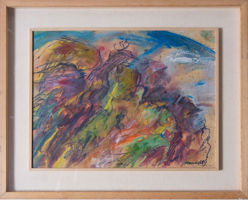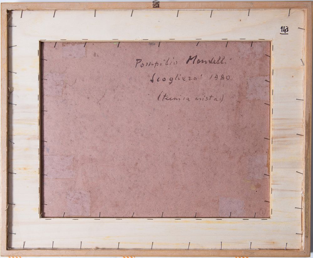 POMPILIO MANDELLI (Luzzara 1912 – Bologna 2006) "Scogliera", 1980. Tecnica mista sumasonite. Cm 37x49. Opera firmata in basso a destra Mandelli. Al retro opera firmata, intitolata e datata Pompilio Mandelli, Scogliera, 1980.
