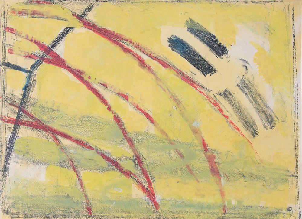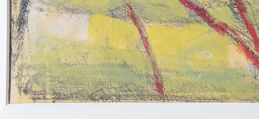 CARLO CORSI (Nizza 1879 - Bologna 1966) "Vortice, traiettoia", 1961. Tecnica mista su carta riportata su tela. Cm 35x46. Opera firmata in basso a sinistra C. Corsi.
