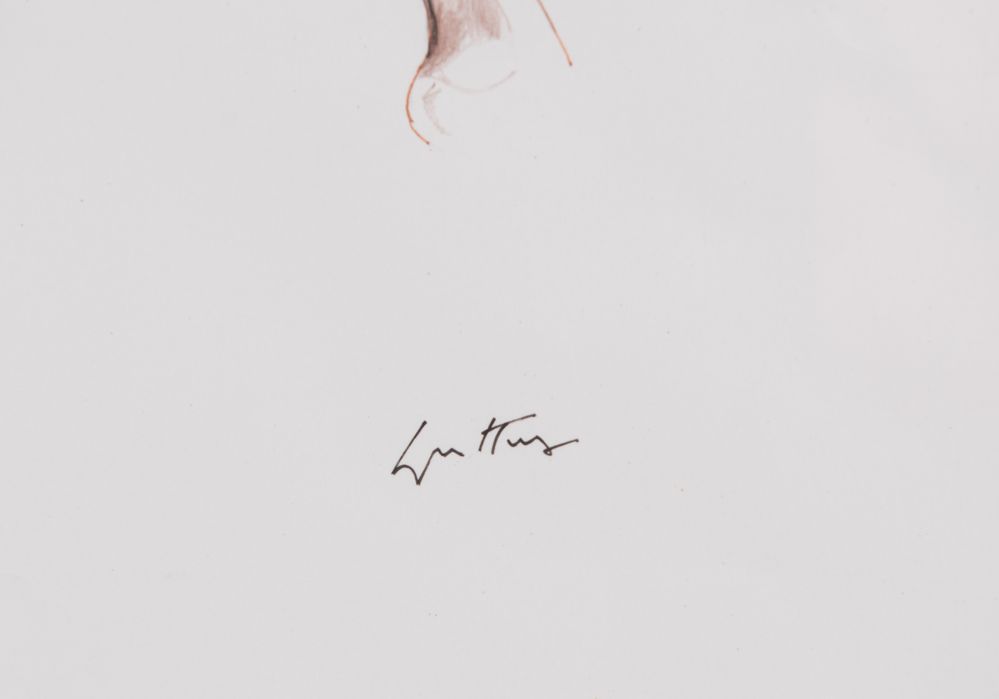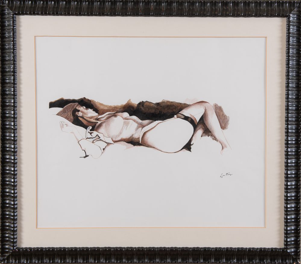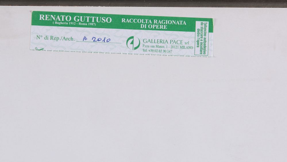 RENATO GUTTUSO (Bagheria 1911 - Roma 1987) "Nudo disteso", 1983. Acquerello e tecnica mista su carta. Cm 50x60. Opera firmata in basso a destra Guttuso. Al retro reca etichetta della Galleria Pace, Milano, con il numero A2010. Opera accompagnata da autentica su fotografia della Galleria Pace, Milano.