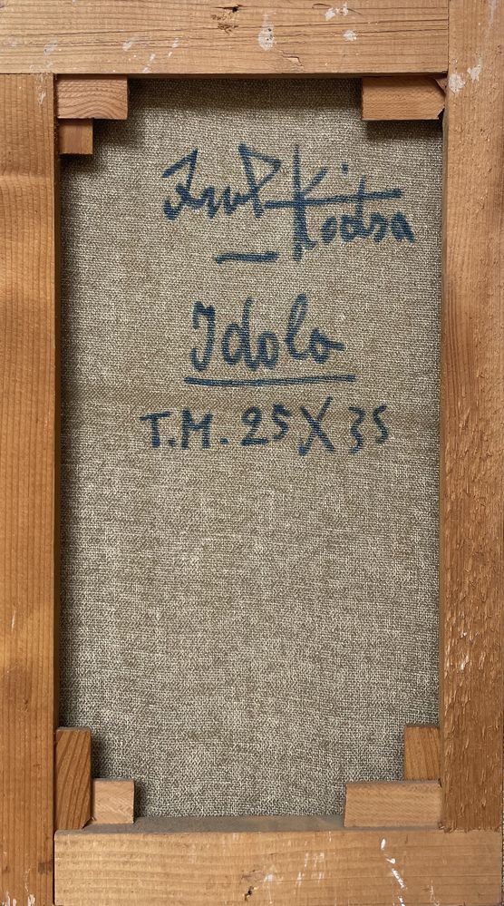 IBRAHIM KODRA (Ishëm 1918 - Milano 2006) "Idolo", 1972. Olio su tela. Cm 35x25. Opera firmata e datata in basso a destra Ibrahim Kodra '72. Al retro opera firmata e intitolata al retro Ibrahim Kodra Idolo.