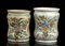 Ceramiche a decoro floreale con sigla D. P. al retro con fregio, 19 x 15 cm e 18 x 14 cm