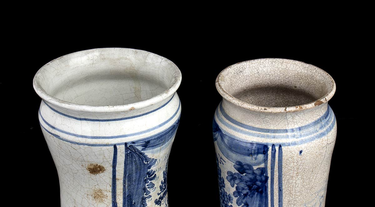 Buone condizioni, varie mancanze sulla superificie di entrambi i vasi