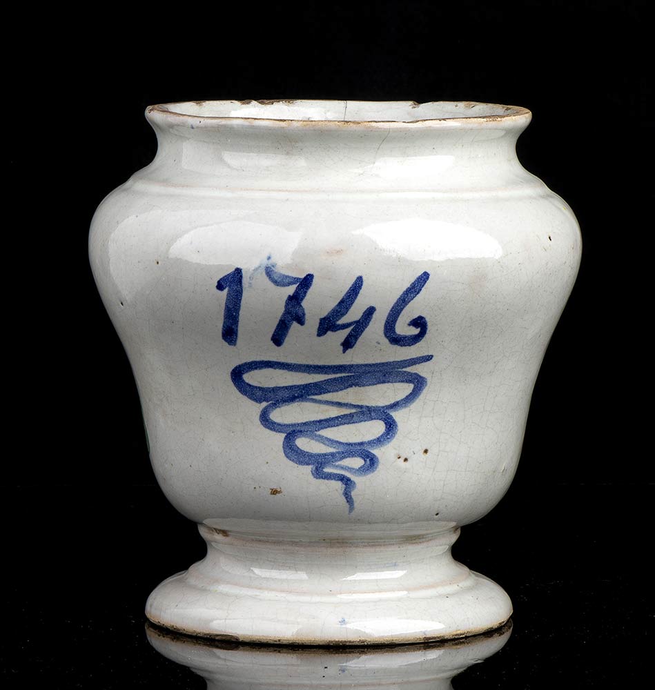 ALBARELLO DA FARMACIA, NAPOLI, MANIFATTURA ANGELO DEL VECCHIO, 1746